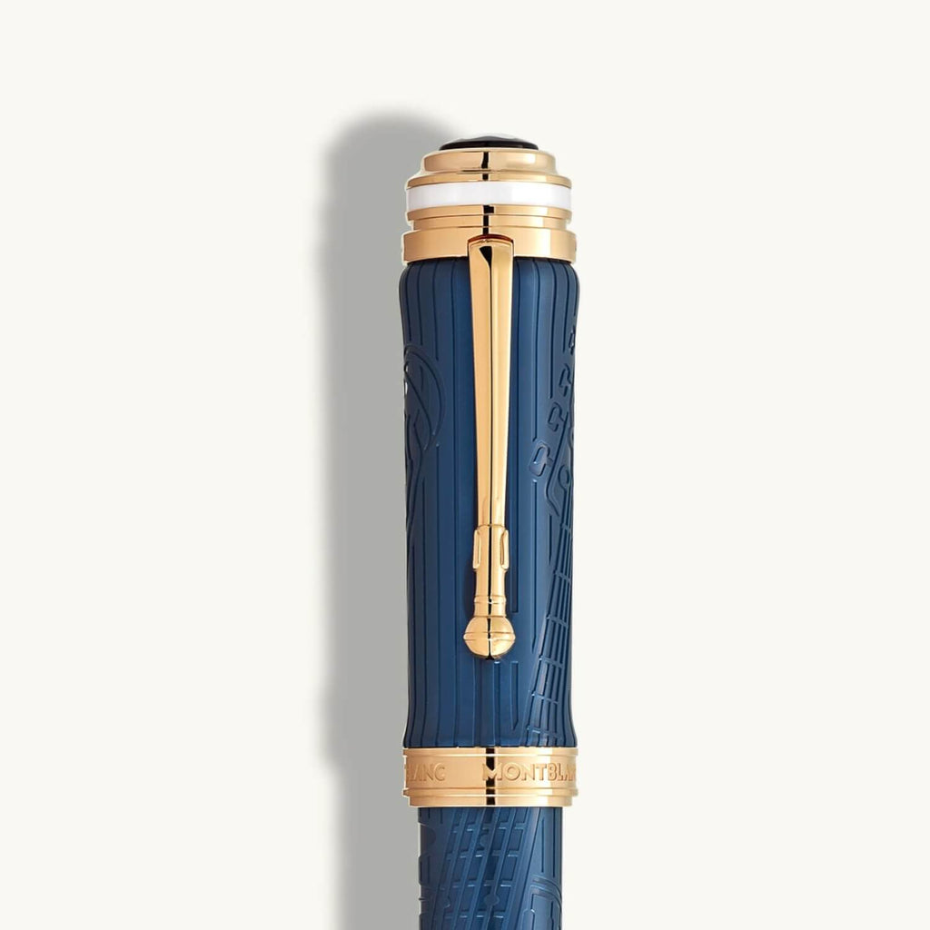 In Anlehnung an die auffällige Farbkombination der Doppel-LP Greatest Hits II erscheint die Edition in Dunkelblau mit vergoldeten Beschlägen. Die vier Musiker, die hinter dem Sound dieses legendären Kompilationsalbums stehen, sind in die Geschichte eingegangen: Freddy Mercury, der charismatische Frontmann mit einem Stimmumfang von mehreren Oktaven und einem reichen Vibrato; Brian May, der virtuose Gitarrist mit seinem unverwechselbaren E-Gitarren-Sound; John Deacon, der vielseitige und kreative Bassist; und Roger Taylor, das rhythmische Herz der Band. Als Zeichen ihrer musikalischen Virtuosität, die das Album von 1991 zu einem der meistverkauften und bekanntesten der Welt machte, sind ihre „Tools of the Trade“, ihre Musikinstrumente, auf dem Edelharz dezent verewigt: Mikrofon und Bass auf der Kappe, Gitarre und Schlagzeug auf dem Korpus. Auf ihrem Album Greatest Hits II präsentierte die Band eine breite Auswahl ihrer Chart-Hits, von Rockhymnen bis hin zu eingängigen Popsongs – darunter Kult-Tracks wie A Kind of Magic, Klassiker wie Radio Ga Ga und The Show Must Go On, das mitreißende I Want to Break Free oder das ergreifende Under Pressure, eine Zusammenarbeit mit David Bowie. Neben der Stimme von Freddy Mercury war das herausragende Gitarrenspiel von Brian May der Schlüssel zum besonderen Sound der Band. Das Schreibgerät ehrt ihn und seine Virtuosität durch die Form der Spitze. Die Form des Konus wurde in Anlehnung an die charakteristischen Lautstärke- und Tonregler seiner berühmten E-Gitarre entworfen und weist ein zartes Rillenmuster, einen kleinen roten Punkt sowie eine Gravur des Veröffentlichungsdatums des Greatest Hits II-Albums auf. Die Krone, die Merkur bei der abschließenden Darbietung von „God Save The Queen“ trug, stand Pate für die Silhouette des Kappenkopfs der Special Edition und ist gleichzeitig eine Metapher für den majestätischen Charakter der Band und ihr musikalisches Vermächtnis. Der vergoldete Clip ist einem Mikrofonständer nachempfunden, in Anlehnung an eines der Markenzeichen von Freddie Mercurys Live-Auftritten.