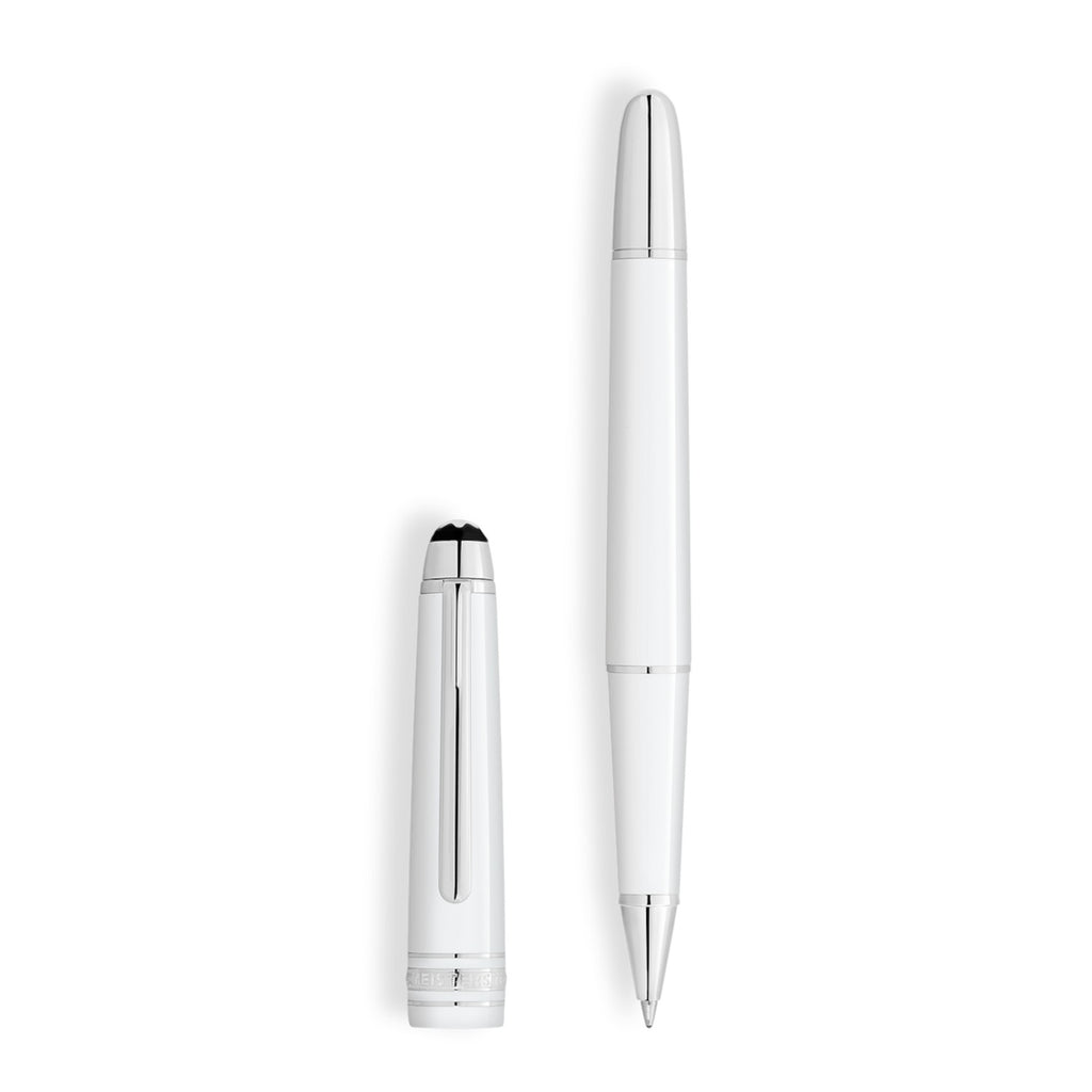 Der Meisterstück Classique Rollerball aus weißem Edelharz mit eleganten platinbeschichteten Beschlägen und dem weißen Montblanc Emblem auf der Kappe entwickelt sich zu einer unverwechselbaren Designikone.