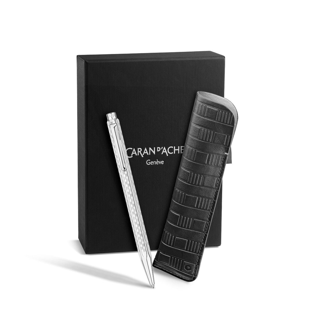 ECRIDOR™ DAMIER SILBERGRAU Kugelschreiber Geschenkset mit Lederetui