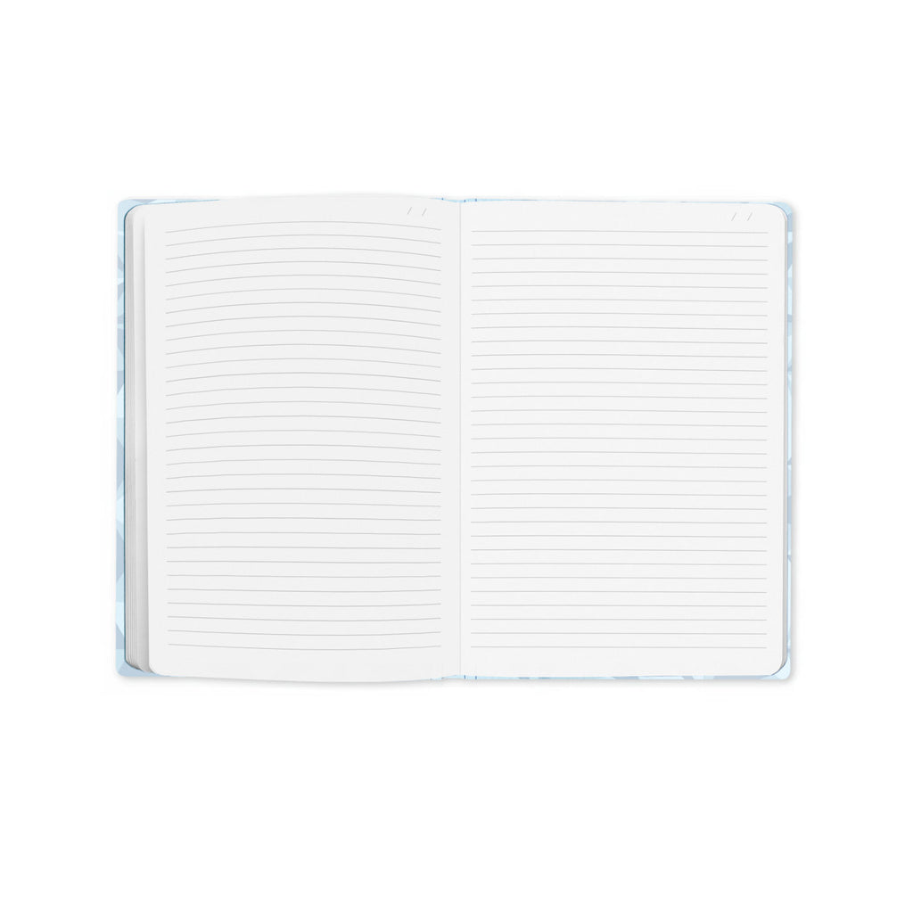 • Hardcover-Einband aus Papier, 300 g/m², verziert mit frostblauen und weißen geometrischen Motiven, die den Facetteneffekt von Winterfrost widerspiegeln